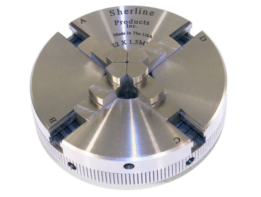Sherline offers their 3.1″ three-jaw and four-jaw self-centering chucks with a 22 x 1.5 mm threaded hole. It is for use on Sherline’s optional ER-16 spindle nose. They can also be used with certain other ER-16 spindles that use the 22 x 1.5mm thread for the collet nut.