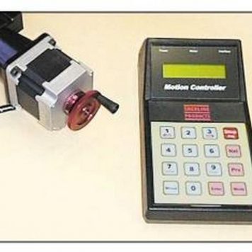 This stand-alone controller is programmable from its own keypad and controls the function of the stepper motor to which it is attached. The stepper motor may be mounted to drive the leadscrew of a Sherline lathe. (A separate kit is available for the crosslide as P/N 8850.) A stepper motor mount, dampened coupling, preload nut, drill guide block, new 24″