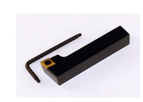 80 Degree Carbide inserts have a strong shape that is generally used for roughing a part to near finished size quickly. This holder is offset 35° to the side for cutting from right to left (the chip comes off to the left side). It is made from steel and case hardened and given a black oxide finish. Included is a P/N 7608 80° carbide insert, Torx hold-down screw and Torx key. A left-hand holder is available as P/N 2253 or you can buy the pair of holders as P/N 2255 at a substantial savings in price compared to buying the two tools separately.