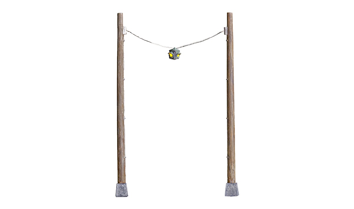 The Suspended Flashing Traffic Lights are perfect for rural areas where a flashing yellow warning signal is needed to caution traffic. They are ready to place right out of the package. They’re hand-painted and authentically weathered. The Traffic Lights are pre-wired and made for use with the Just Plug® Lighting System. Yellow light flashes on all four sides. One package includes two flashing yellow signals.